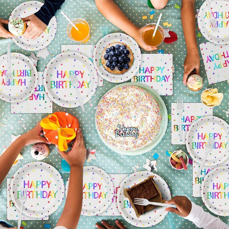 - Versatile for all occasions: The colorful birthday paper plates and napkin packs are ideal for various occasions. They beautifully complement any iridescent birthday-themed party decorations, including colorful birthday party tablecloths, colorful birthday banners, iridescent bags, and colorful birthday party backdrops. This set adds a wonderful finishing touch to your overall happy birthday party setup.