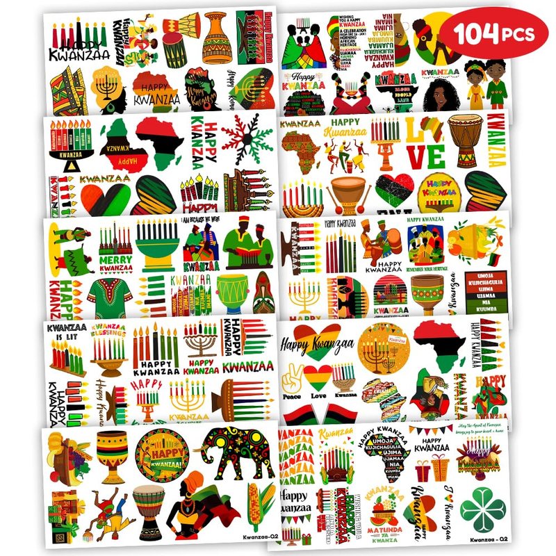 - Cute patterns: Happy Kwanzaa African American Black History Month Africa Temporary tattoo stickers, features an assortment, colors are bright, and designs are adorable, which are attractive to children. Our party favors are based on children's happiness both in appearance and inwardness.