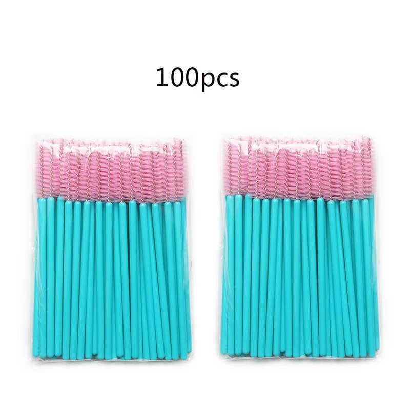100pcs Mascara Wands Disposable Lash Brushes for Eyelash Extension Supplies Makeup Applicator Tool, Blue/Pink