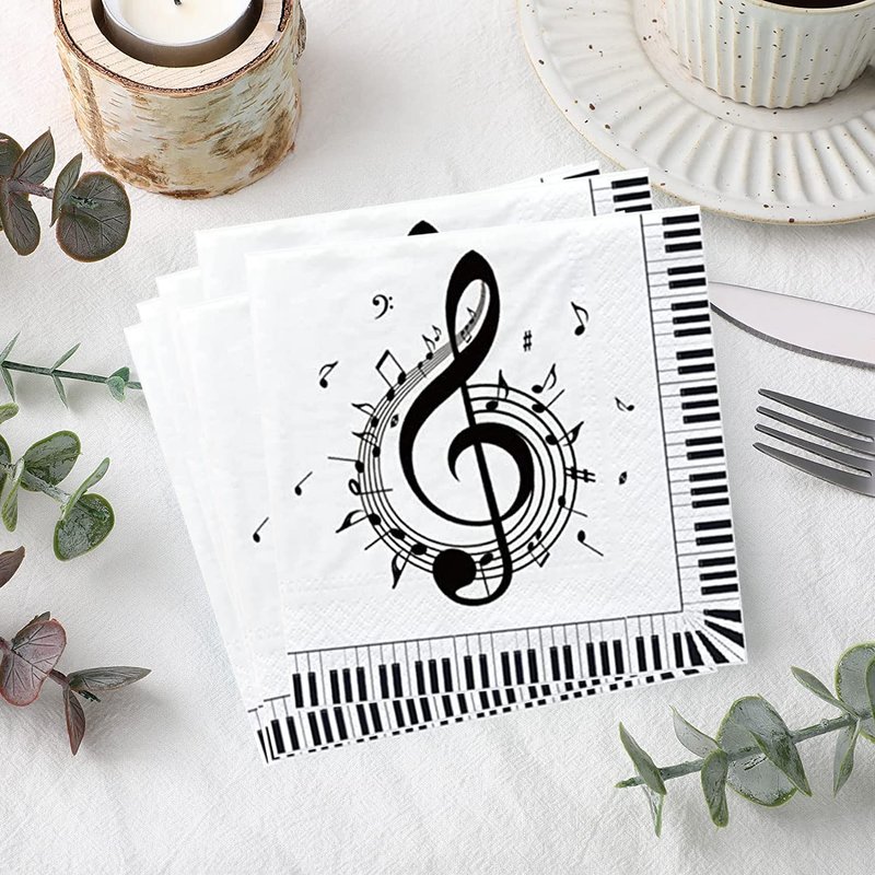 - 【Music Notes Party Supplies】:Black and White Musical Notes disposable paper napkins is the perfect choice for almost any occasion.Perfect for your Music themed party,musical birthday party, a camping, a class music event,a party for music lovers,weddings,bridal showers,baby showers,kitchen table decoration,picnics,music video shooting,music party,outdoor use,picnic,camping or hiking.