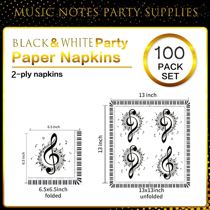 - 【Musical Notes Party Napkins】:You will receive 100 packs -music notes with cocktail napkins,music napkins,music party napkins,cocktail napkins,black and white napkins.The napkins printed with: black and white musical notes.super cute for music themed birthday party decorations,each set can accommodate100 people guest.