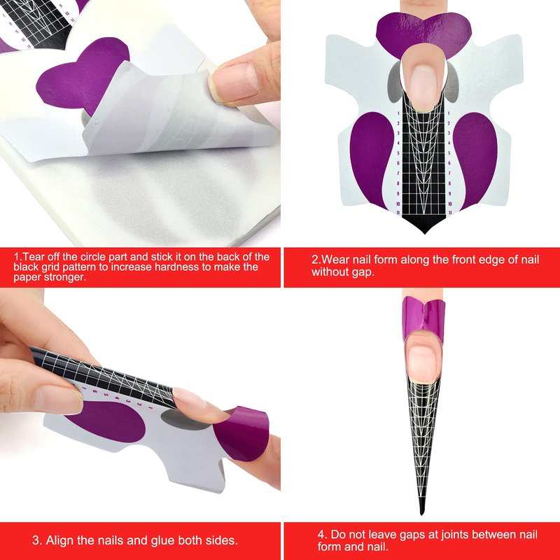 - [Suitable for DIY Beginners]: a lot easier to place them, and allow you to get them situated without a gap at nails, it never rips and always stays in place way better. but you can easily move it around if needed. Suitable for Experts: They stayed on amazingly in good structure instead of flimsy. for teachers, these forms are helpful to teach student how to sculpted nails with acrylic.