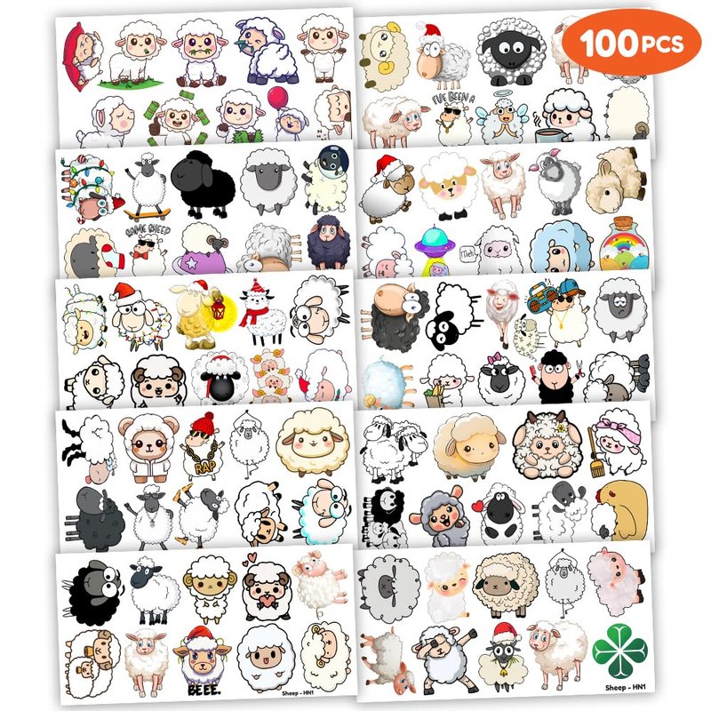 100PCS Sheep Lamb Temporary Tattoos Stickers Theme Eid Mubarak Birthday Party Decorations Favors Supplies Cute Farm Barnyard Animal Tattoo Gifts For Kids Boys Girls School Rewards Prizes Carnival