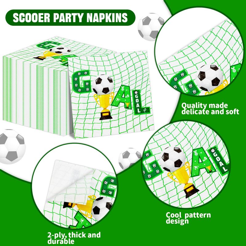 Our 100Pcs soccer napkins are the perfect addition to your party supplies, whether you're celebrating a birthday, team victory, or just love the game of soccer.These soccer party bapkins are the ideal choice for adding an extra touch of wonder to the occasion.
