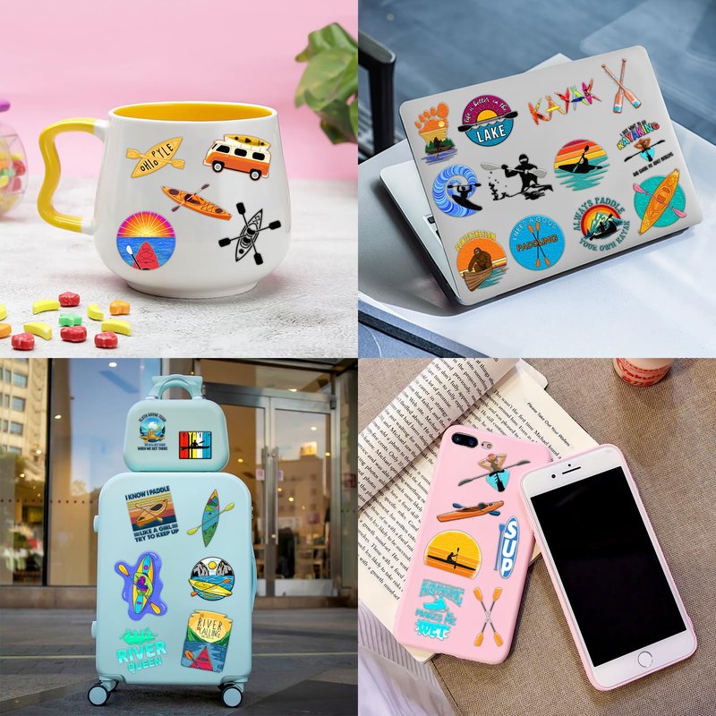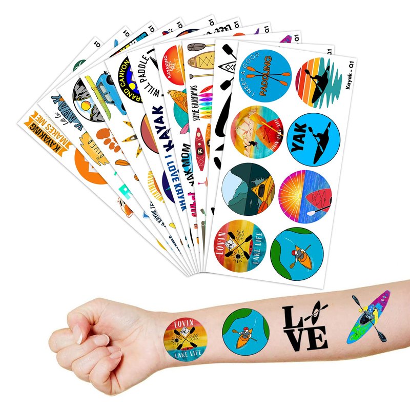 - Cute Summer Kayak Kayaking Beach Canoe Kayaker Hawaiian Surf Surfing Surfer California Birthday Party Decoration: The set contains instructions for use and is easy to use. Summer Kayak Kayaking Canoe Kayaker tattoo stickers can be applied on arms, face, hands, neck, shoulders, legs, wrists and ankles to make you look cool at all kinds of parties. Popular hit with your kids. You can apply them to your body or some smooth objects, for example, glass, stationery, paper, crafts cups, cabinet, bottle.