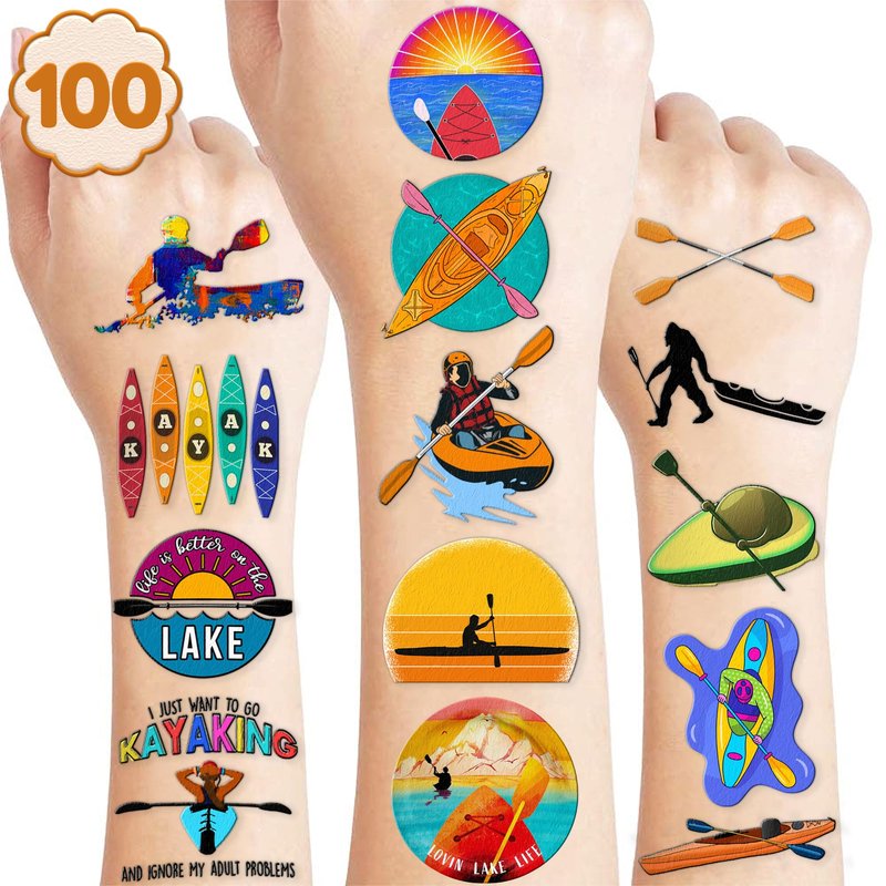100PCS Summer Kayak Kayaking Temporary Tattoos Stickers Themed Birthday Party Decorations Supplies Decor Favors Beach Canoe Kayaker Hawaiian Surf Tattoo Gifts For Kids Boys Girls Class Prizes Carnival