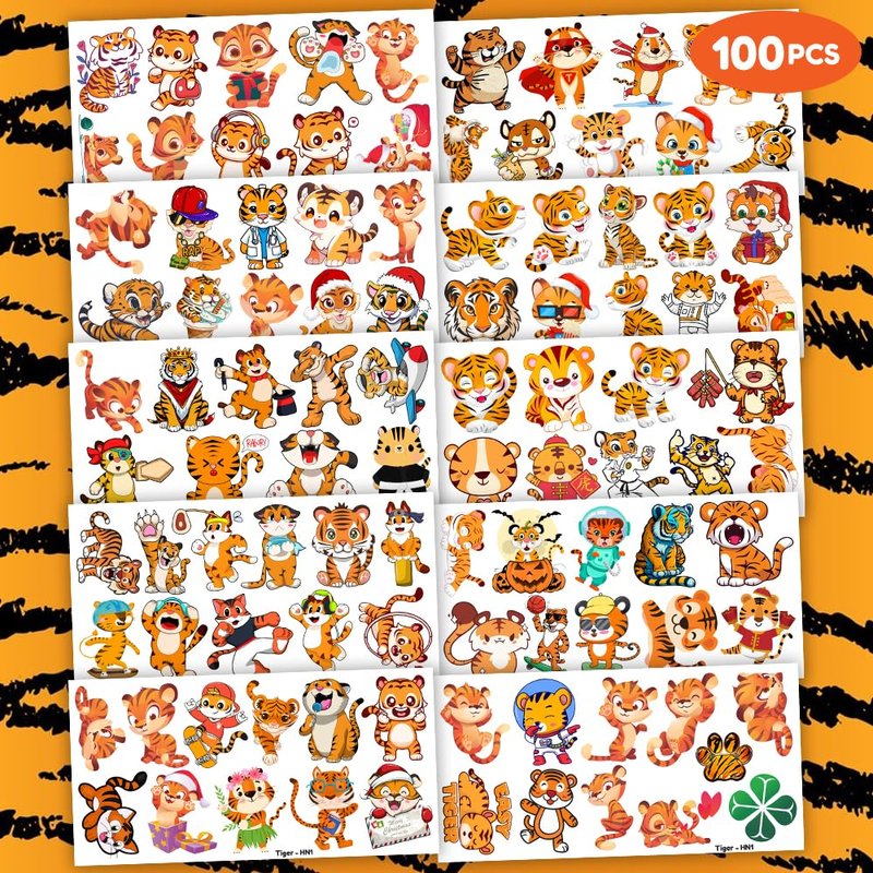 100PCS Tiger Temporary Tattoos Stickers Theme Wild Safari Jungle Zoo Animal Birthday Party Decorations Favors Supplies Cute Tattoo Sticker Gifts For Boys Girls School Prizes Rewards Carnival Christmas
