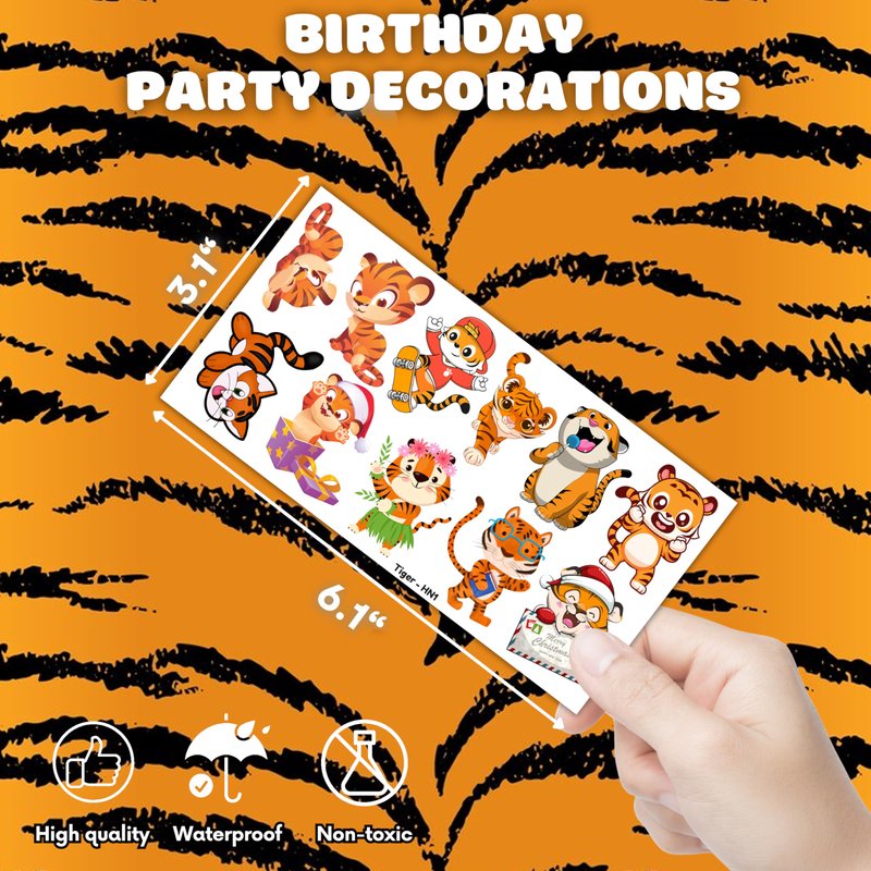 - Widely used: These Cute Tiger Wild Safari Jungle Zoo Animal Temporary Tattoos pieces are suitable for many occasions such as birthday parties, baby showers, birthday gifts, party decorations, gatherings and other special celebrations. It also can be applied on laptop, cup, luggage, phone case and so on which could make you look more impressive
