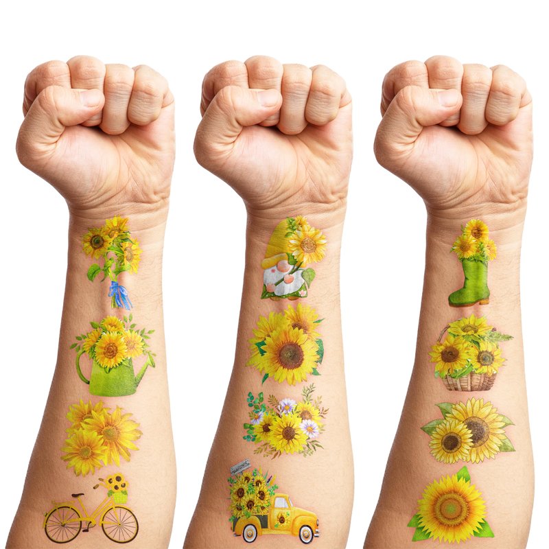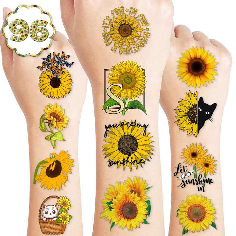 - Widely used: These Yellow Sunflower Spring Summer Sun Sunshine Flowers Temporary Tattoos pieces are suitable for many occasions such as birthday parties, baby showers, birthday gifts, party decorations, gatherings and other special celebrations. It also can be applied on laptop, cup, luggage, phone case and so on which could make you look more impressive.