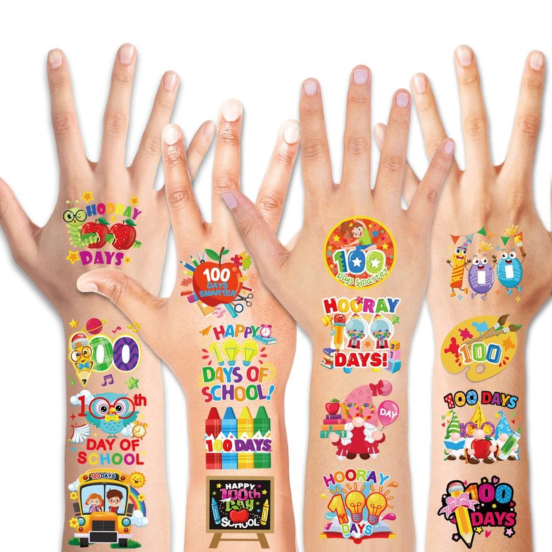 - Perfect 100th Day Of School Party Accessories: Hooray 100 days Temporary Tattoos Stickers for school themed party supplies are popular gift for kids! Hooray 100 days of school party fake tattoos are popular school rewards, class activities prizes, kids birthday gift, 100 days of school party favors, preschools 100 days of school party celebrating and other special events!