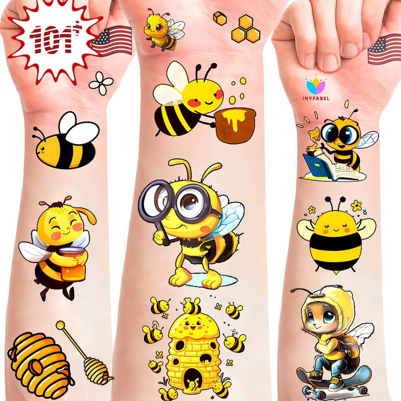 101+ Bee Temporary Tattoos – Printable, Waterproof Fake Tattoos for Kids, Girls, Boys, Teens & Adults – Ideal for Birthday Parties, Decorations (A)