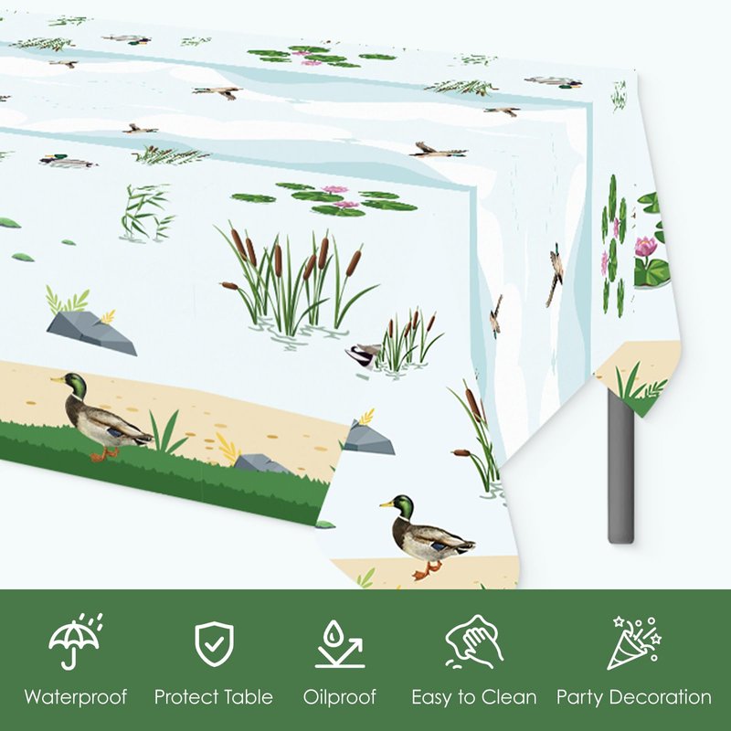 - High-quality Materials: All of our mallard duck theme party plates and napkins are made of high-quality paper, non-toxic and odorless. The lucky duck birthday party tablecloth is made of high-quality PE material, the pattern and color are beautifully printed and not easy to fade, easy to clean and recyclable, the size is large enough to cover most rectangular tables