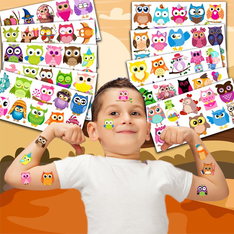 - Pattern rich: Owl Night Birds Cute Wisdom Kawaii Intelligent Temporary Tattoos include 10 Sheets 101 PCS, the size of each sheet is 6.1 * 3.1 inches. Easy to share,even if a lot of people's parties, you can have a different tattoo with others.These adorable tattoos will keep you and your little ones – and their friends – occupied for a while. Great for playdates, parties, or rainy days.