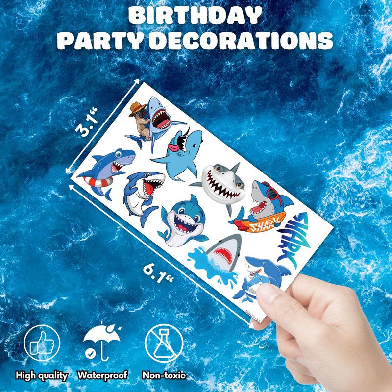 - 🦈 FUN GIFT FOR DOLPHIN BIRTHDAY PARTY DECORATIONS SUPPLIES: SHARK TATTOOS for themed party, outdoor parties, birthday parties, school rewards and other party events. In addition, they help children recognize Sea Animal. SHARK TATTOOS are also interesting and lovely gifts for your children. Complement your unique collection with a shark tattoo!