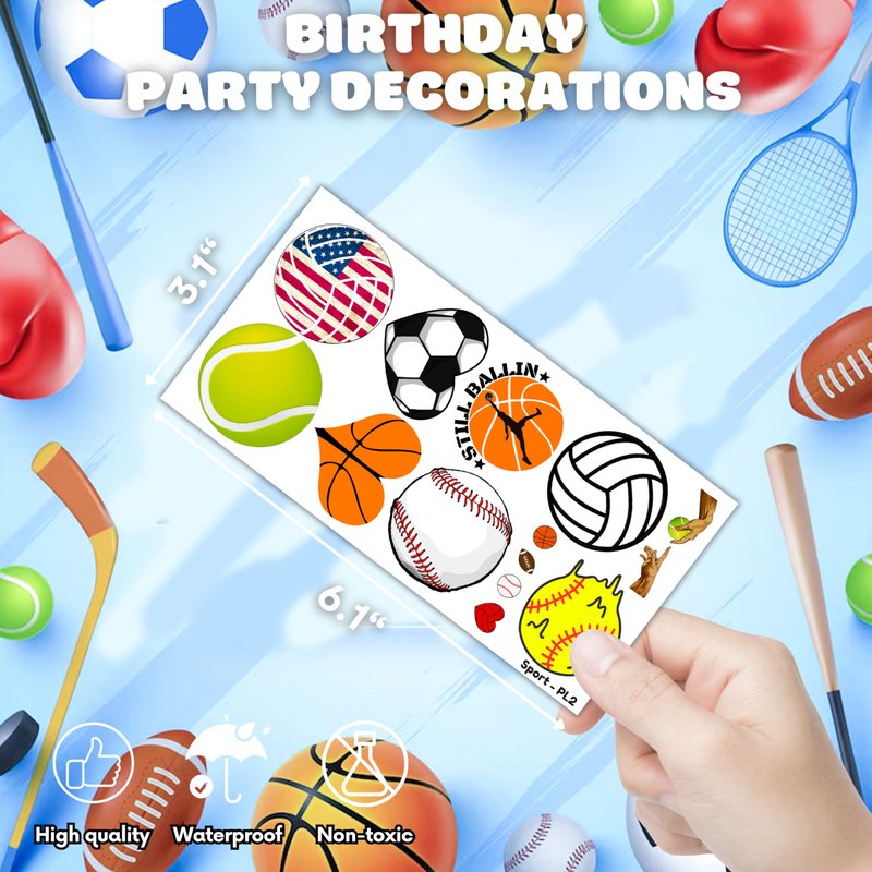 - Widely used: Sports Ball Cute Basketball Football Baseball Soccer Temporary Tattoos pieces are suitable for many occasions such as birthday party supplies, party decorations, party favors, party bags, DIY decorations, pool and the beach or gift. Temporary tattoos are the best party favors and goodie bags fillers ever for any kind of celebration!
