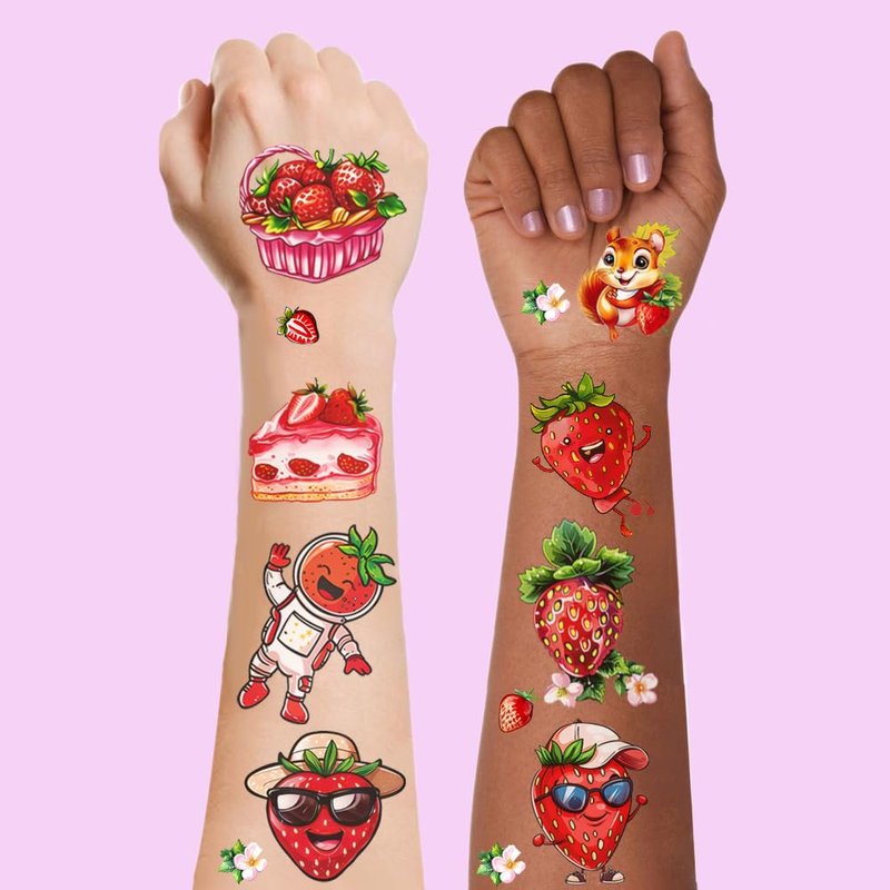 101+ Strawberry Temporary Tattoos – Waterproof Fake Tattoos for Kids, Girls, Boys, Teens & Adults – Ideal for Birthday Parties & Decorations (B)