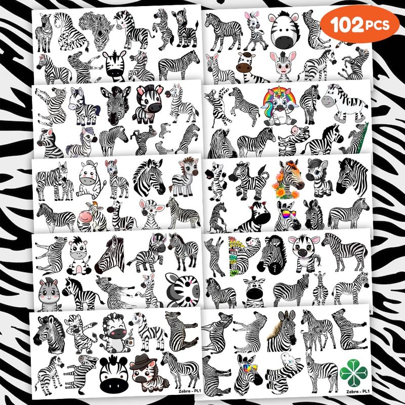 - Pattern rich: Zebra Print Cute Jungle Safari Animal Temporary Tattoos include 10 Sheets 102 PCS, the size of each sheet is 6.1 * 3.1 inches. Easy to share,even if a lot of people's parties, you can have a different tattoo with others.These adorable tattoos will keep you and your little ones – and their friends – occupied for a while. G