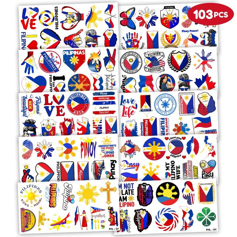 - Cute Philippines Filipino Flag Pride Birthday Party Supplies: 10 Sheets Philippines Filipino Flag Pride Star Sun Flags temporary tattoos stickers, Have a variety of themed color, Children can easily Philippines Filipino Flag Pride Star Sun Flags stickers and take unique photos to make fond memories. The size of each sheet is 6.1 * 3.1 inches.