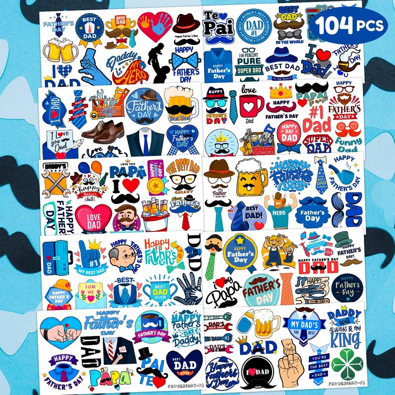 - 👨DAD BIRTHDAY PARTY DECORATIONS: Hi everyone! An amazing set of 10 sheets including 104 a size of 6.1 by 3.1 inches. These FATHERS DAY tattoo pieces will be sent to you quickly, place your order to get these temporary tattoos.