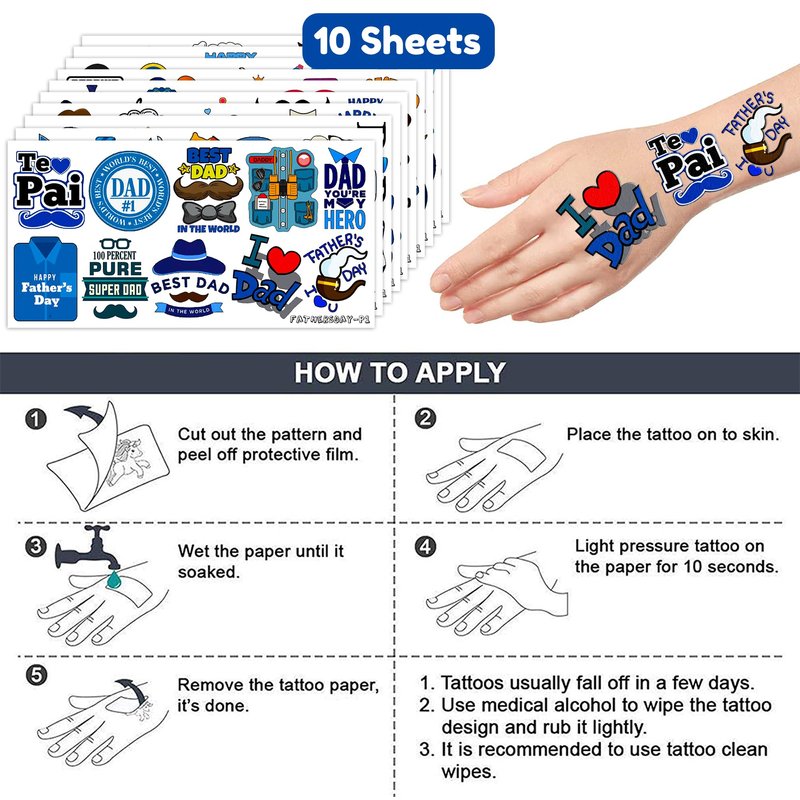 - 🤵FATHERS DAY PARTY: Get a Father's Day tattoo as a way to honor your dad. It's a kind approach to express gratitude. Select a saying, emblem, or picture of the best dad. Get our Father's Day tattoo right away for a special occasion. Happy Father's Day, too!