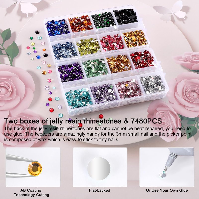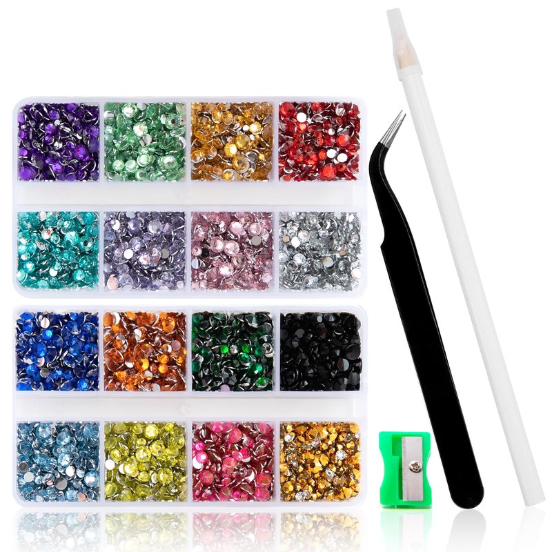 - TWO BOXES RHINESTONES: 10400PCS jelly rhinestones for crafts & 15 cm pencil sharpener and tweezer & picker pen, you get the box rhinestones and can easy to make the crafts! Resin rhinestones use advanced diamond cutting and AB coating technology, their shine is forever / never fades. Size - 2MM, 3MM, 4MM, 5MM,total 10400PCS.