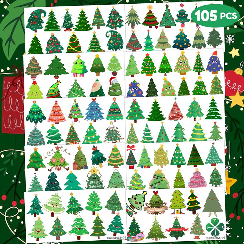 105 PCS Christmas Tree Temporary Tattoos Birthday Party Decorations Supplies Favors Mini Merry Xmas Tree Cute Decor Tattoo Stickers Gifts For Game Boys Girls Classroom School Prizes Reward