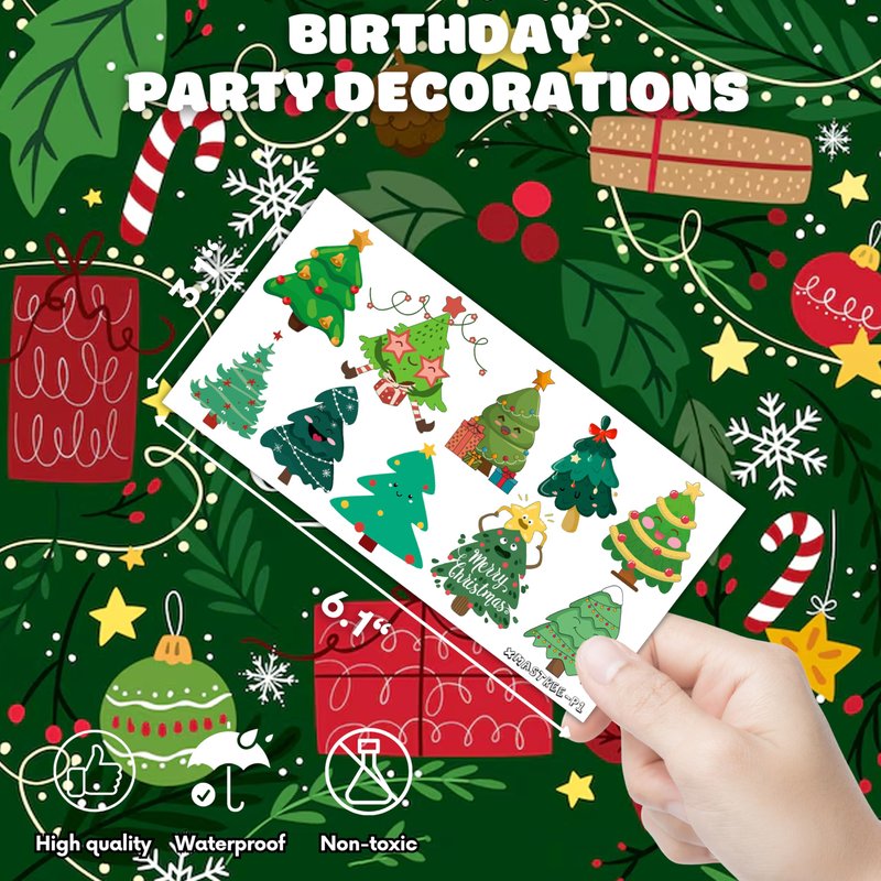 - ❄️BEST CHRISTMAS TREE: Our temporary Christmas tree tattoos can add some festive spirit to any event. Choose from eye-catching themes for your event, such as Christmas trees or Christmas days. So, order our Xmas Tree tattoos now to give your celebration a special touch.