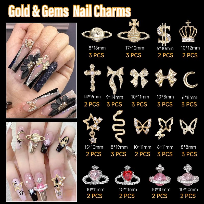 - Workmanship Aspect: The nail charms are made of high-quality alloy and rhinestones, silver and gold nail gems charms grain clarity, not easy to fade. You can apply these sparkling nail charms to decorate your nails