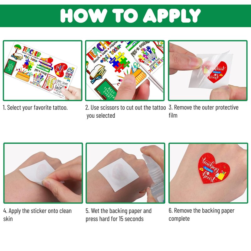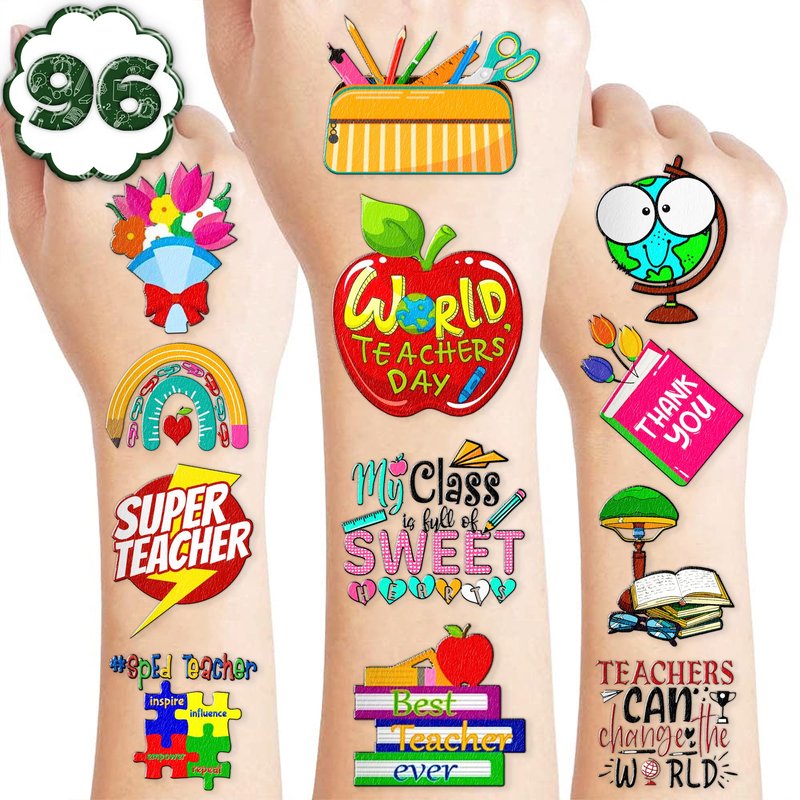 - 🍎TEACHER PARTY: Our selection of temporary tattoos inspired by TEACHER appreciation will add an extra special touch to your party. We offer a variety of distinctive styles that will make your event stand out. So, purchase our teacher tattoos now and make your event truly unique!