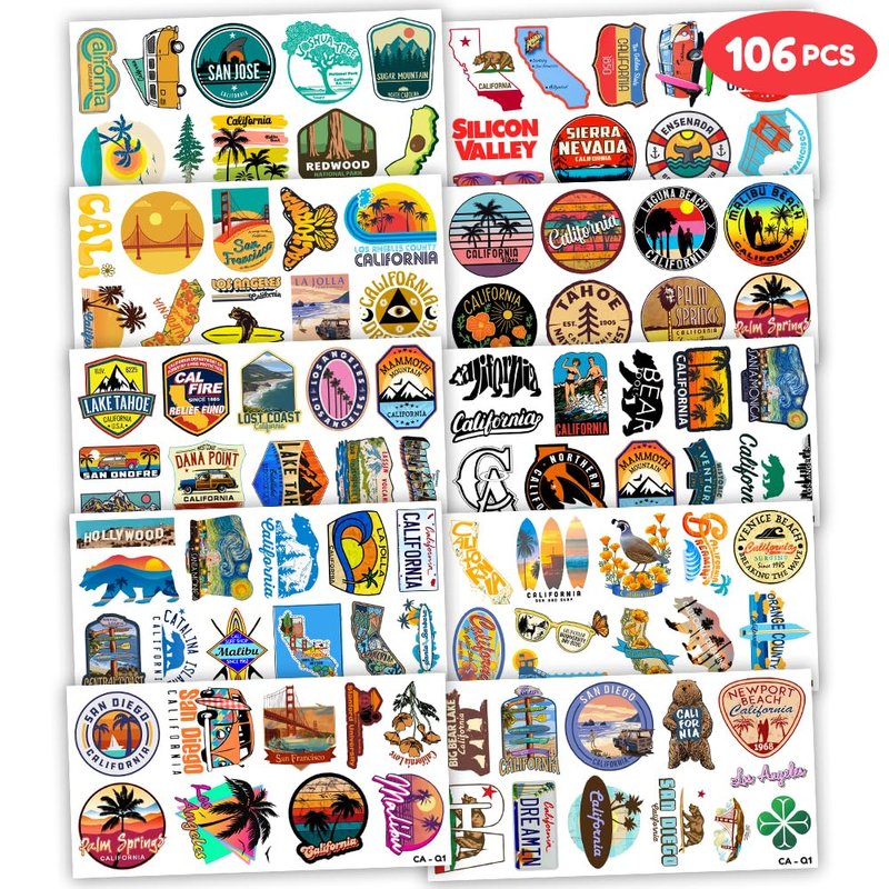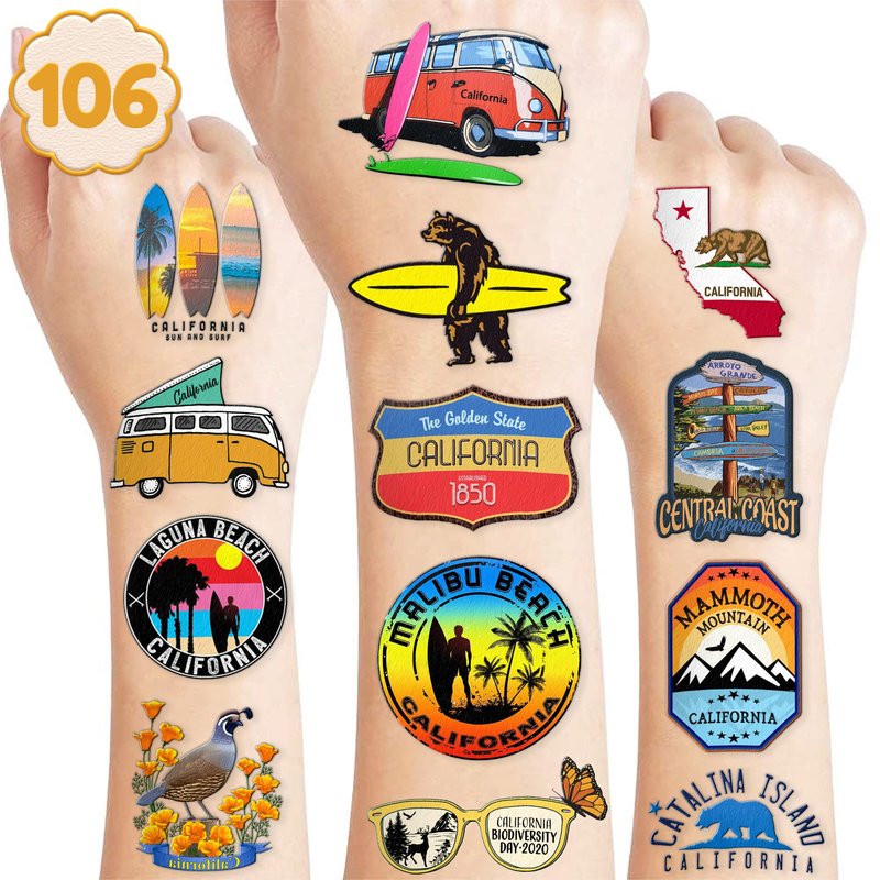 106 PCS Love California Flag Beach Stickers Temporary Tattoos Stickers Birthday Party Decorations Supplies Favors Decor Cute Cool Travel Tattoo Sticker Gifts for Kids Boys Girls School Prizes Carnival