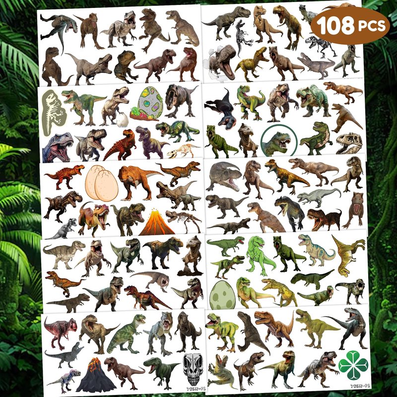 - 🦖DINOSAUR PARTY DECORATIONS: Hi everyone! An amazing set of 10 sheets including 108 a size of 6.1 by 3.1 inches. These TREX tattoo pieces will be sent to you quickly, place your order to get these temporary tattoos.