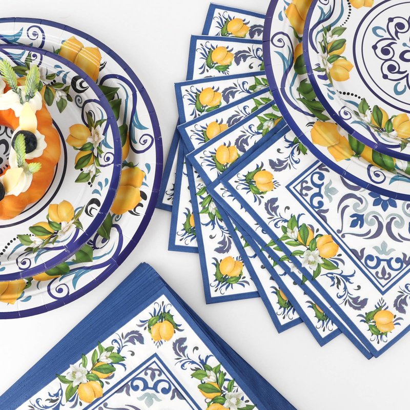 - Unique Pattern: Mediterranean Puri Lemon Masterpiece Party Tableware Set is designed with Capri Lemon and Blue Tile Pattern. Fill your party with lemon atmosphere and add a touch of cuteness and freshness to your party. If you want to throw a creative party, then you can't miss this birthday decorations set. This Italian summer party decorations set can be a wonderful experience for your kids and their friends
