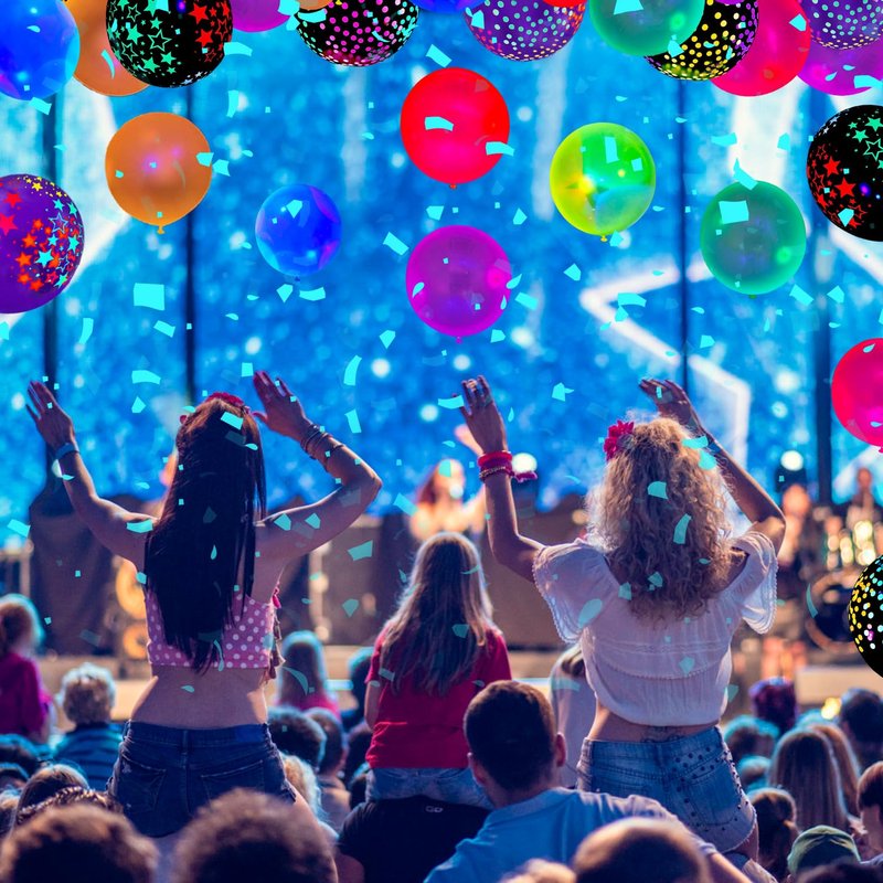 - Unique Design: Different from traditional balloons, fluorescent balloons are brightly colored. Each balloon is printed with mini polka dots or stars in green, yellow, orange, purple, and pink, which will shine in the dark wherever they go, making it easy for your guests to notice it at a glance, adding more fun to your party. These beautiful fluorescent balloons emit fluorescent effects under specific UV lights at night. No fluorescence reaction under normal light!