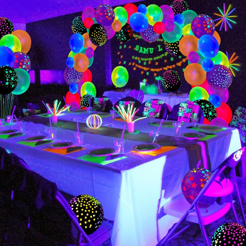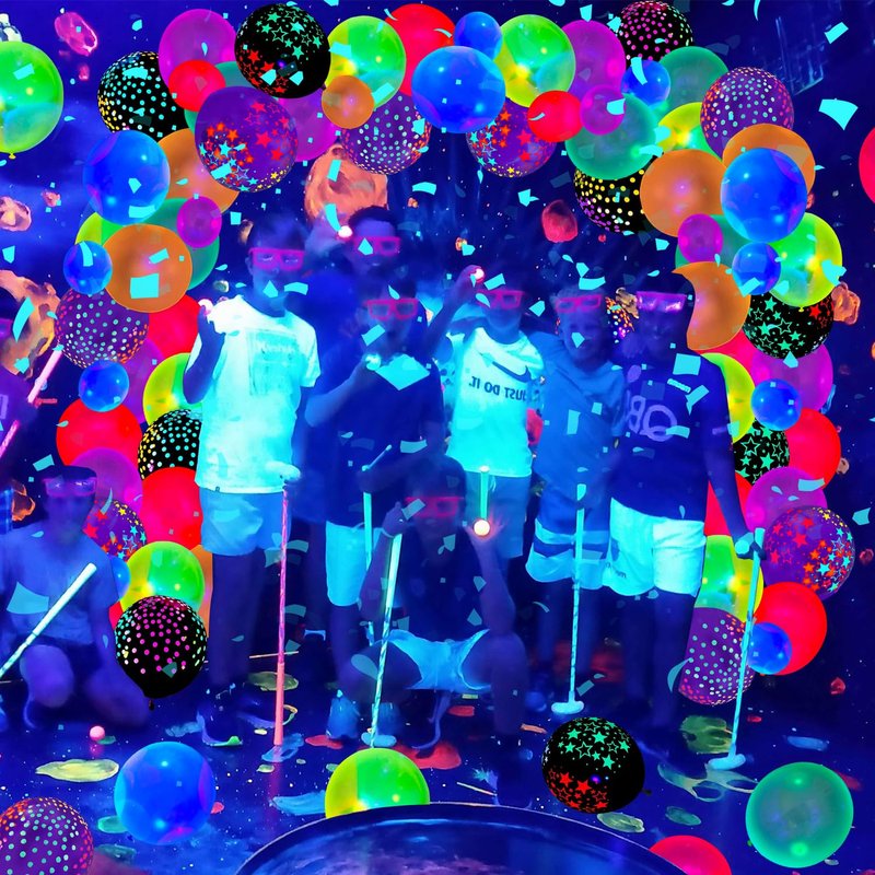 - Ideal Choices: The glow in dark party balloons are suitable for a glow birthday party, neon theme party, blackLight theme party, glow neon party, fluorescent party, neon birthday party, blacklight birthday party, UV light party, birthday party, stage decoration, baby shower, growth party, retro disco party, festive carnival, balloon themed birthday party, masquerade party, reunion party, music themed party, graduations, carnivals, weddings, photo background. They make your party more exciting.