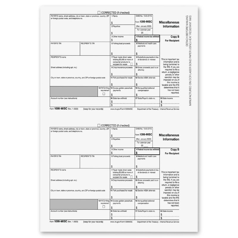 - 50 1099 MISC Copy B Forms for Recipient (25 sheets, 2 forms per sheet))