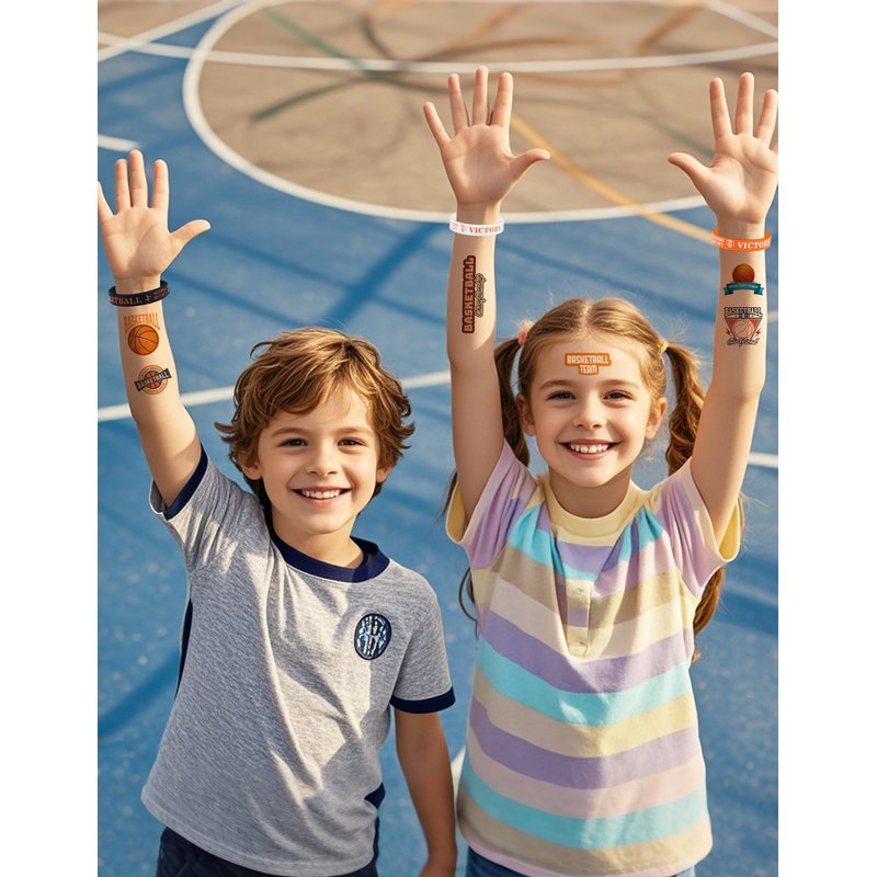- PERFECT BASKETBALL THEMED GIFT FOR ALL: Our basketball silicone wristbands and tattoos make a quintessential gift for every age bracket. They are apt for any eventuality, presenting an economical yet heartwarming option. Whether it's school shindigs, birthday bashes, or stocking stuffers, this basketball-themed ensemble injects a trendy and nostalgic twist into anyone's accessory wardrobe, kindling joy and treasured memories.