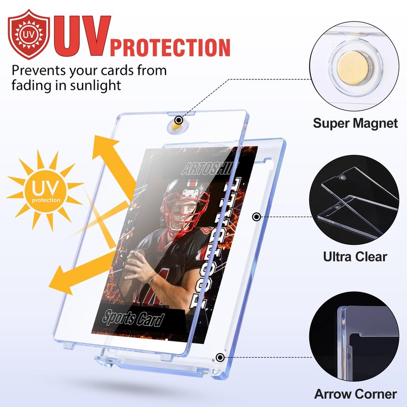 10ct Magnetic Card Holder, UV Protection Baseball Card Holder, 35pt Magnetic Card Holder, Magnetic Card Holders for Trading Cards, Protect & Store Valuable Sports Cards, Football Cards & Gaming Cards