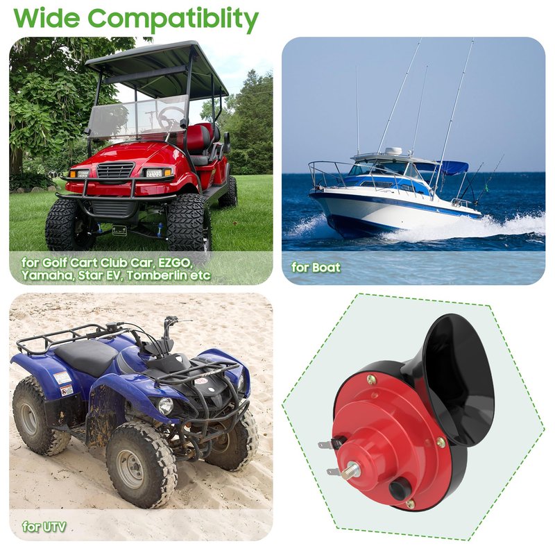 - 12 Volt horn kit universal for Yamaha, EZGO, Club Car, Star EV, Tomberlin Golf Cart, UTV and Boat