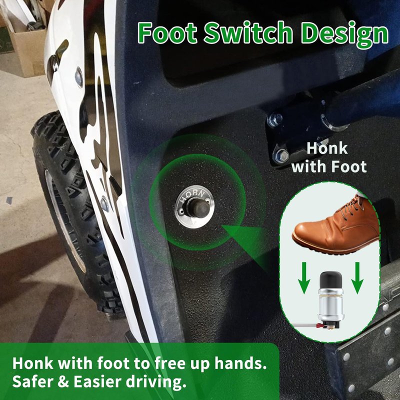 【Packege Content】Completed set of golf cart horn kit, including wiring harness, mounting bracket, floor horn button switch and horn for golf cart. Installation is very convenient and simple in few minutes..