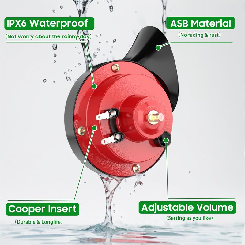 【Durable & Longlife】The car horn is made of high quality ABS plastic shell with quality copper wire coil and switch. Durable and no rust. It comes with a long service life without any worries about using outdoor.