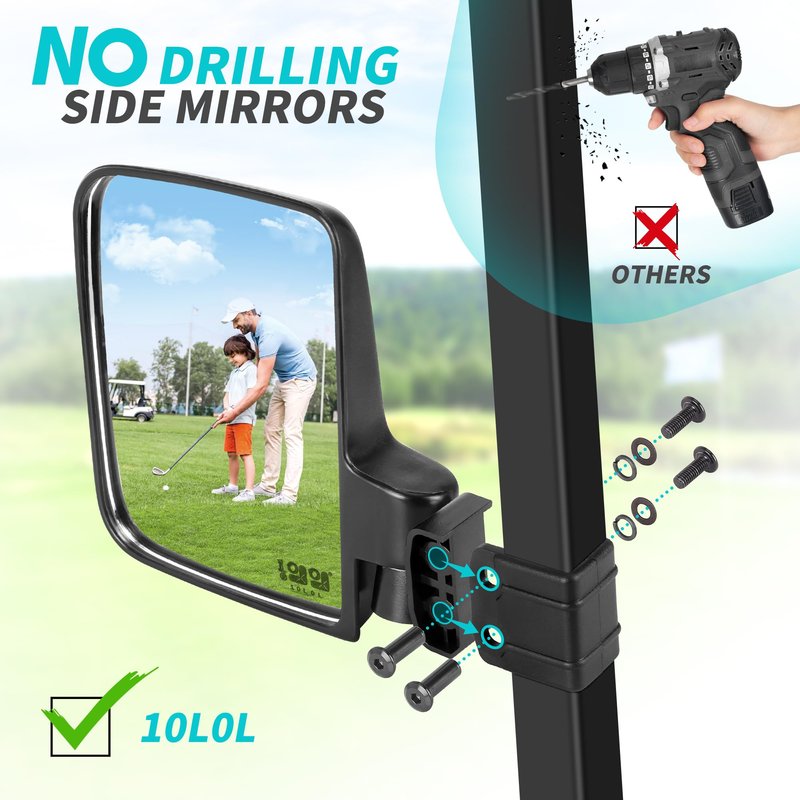 10L0L Golf Cart Mirror No Drilling Side Mirrors Universal for Club Car, EZGO,Yamaha, Folding Side Rear View Mirrors Adjustable 180 Degree HD Glass