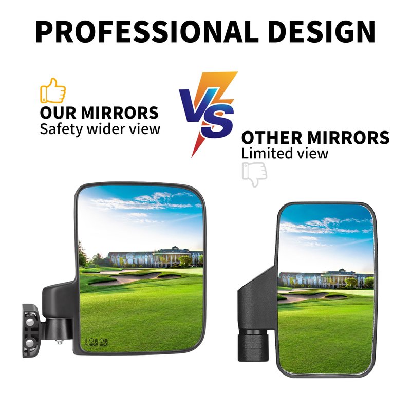 - This golf cart side view mirror adopts with convex lens design offers you a super wider vision, clearly catch sight of the rear upcoming vehicles.