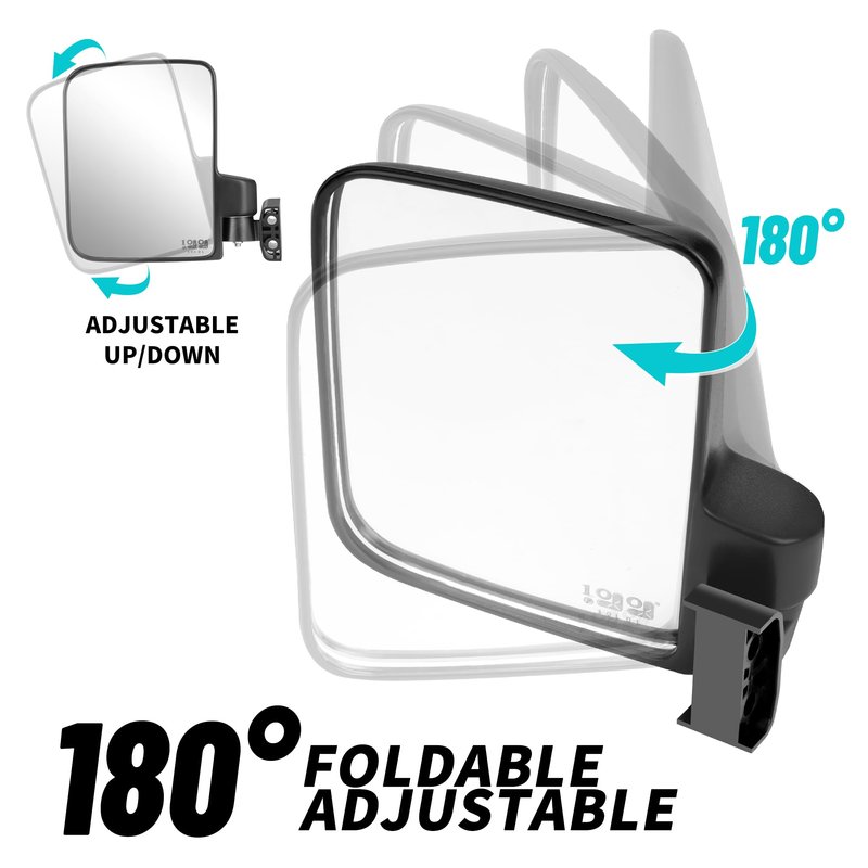 - 180 degree fully adjustable golf cart side mirror set, easy to adjust front & back for the desired visual angle. And foldable when meeting obstacles to prevent breaking.