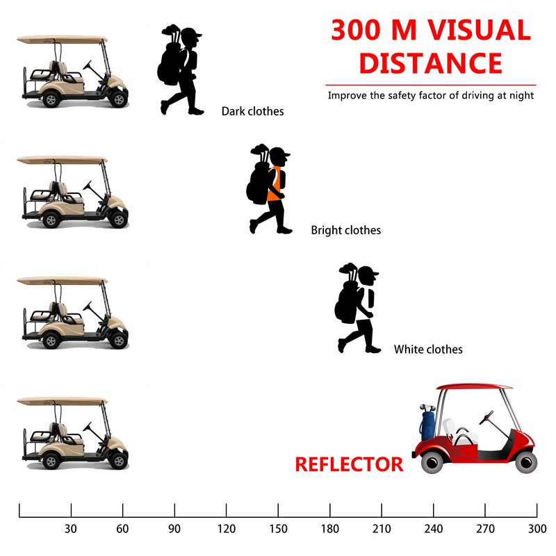 - Safety purpose.Great way to add visibility and safety,the vehicles' lights make them more visible in the dark, easy to get attention, use them on your golf cart to help you more visible and to abide by local street ordinances