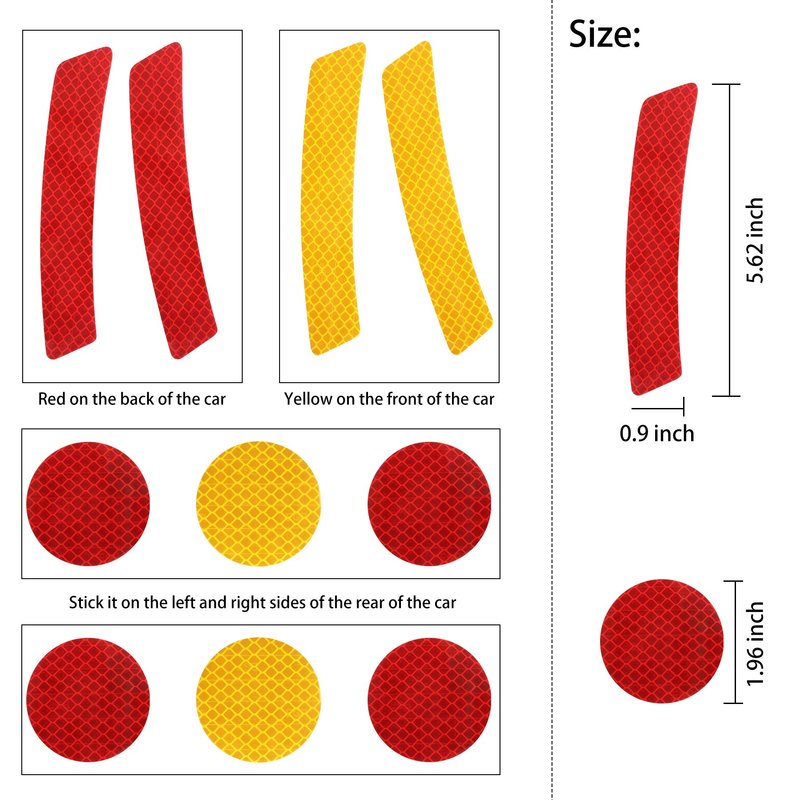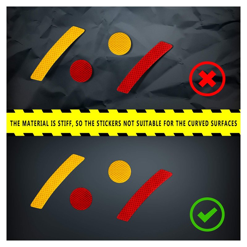 - Bright Fluorescent,Ensure that the surface is dry and clean, you can easily bend the label to paste it on the curved surface, it has a strong reflectivity and a wide Angle of about 180 degrees of reflection to provide nighttime safety.