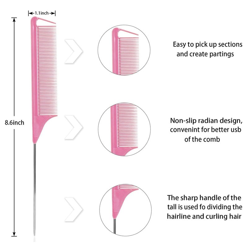 - Rat tail Comb Features: The Rat Tail Comb Can Easily Handle Various Styling Needs, Such as Braiding and Updos, Making it an Essential Styling Tool for Both Salon Hair Styling and Daily Home Hair Care.