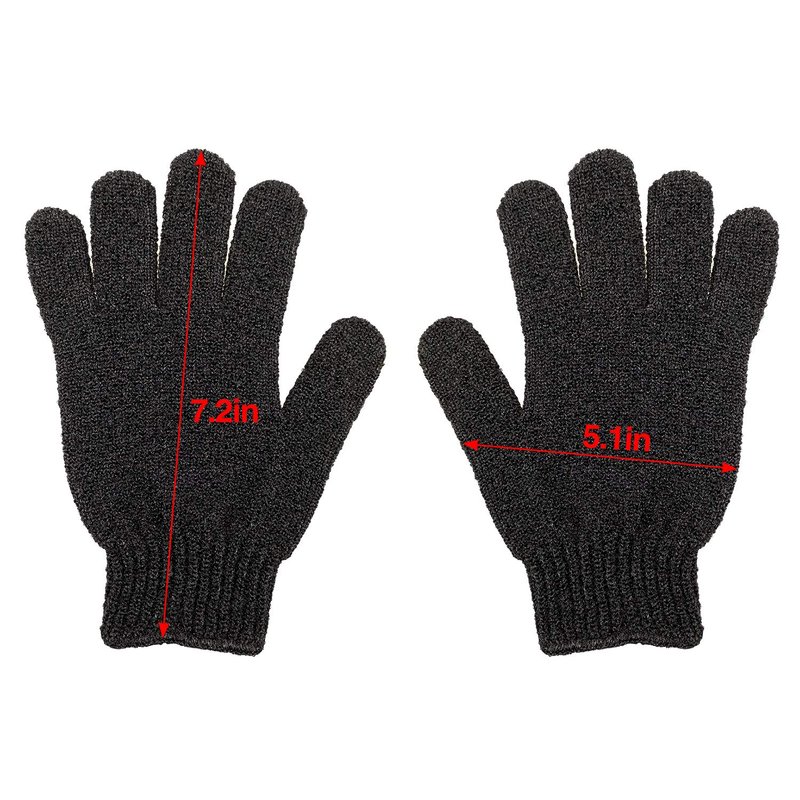 - Body Scrub Gloves Size: Highly flexible,Shower gloves stretch to fit ALL hand sizes. The elasticized wrist makes sure the exfoliant shower scrubs stay in place and will not fall off.