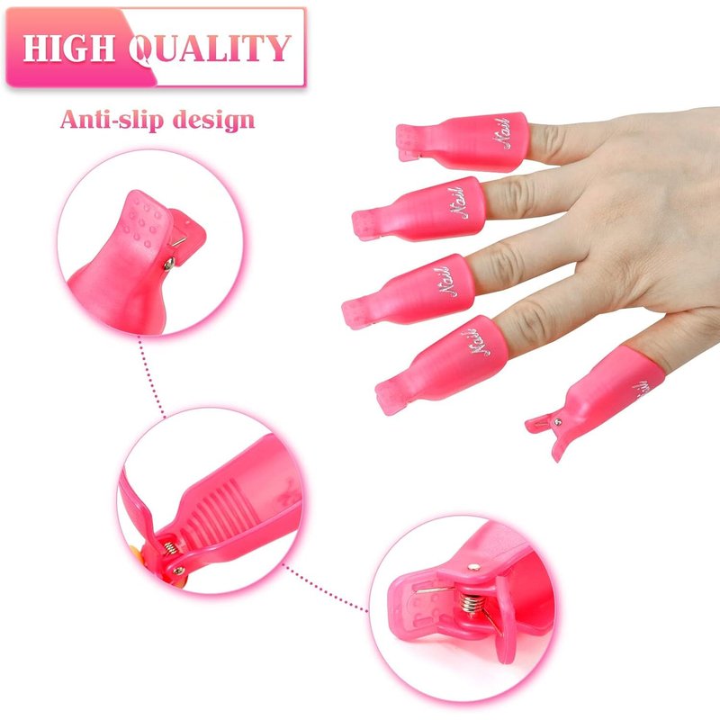 - Nail Polish Remover Clips:They are easy to operate and quickly remove nail polishes, UV gel etc.Sleek nail remover clips with anti-slip design can provide enough pressure to make these clips stay on your nails but not hurt your nail bed.