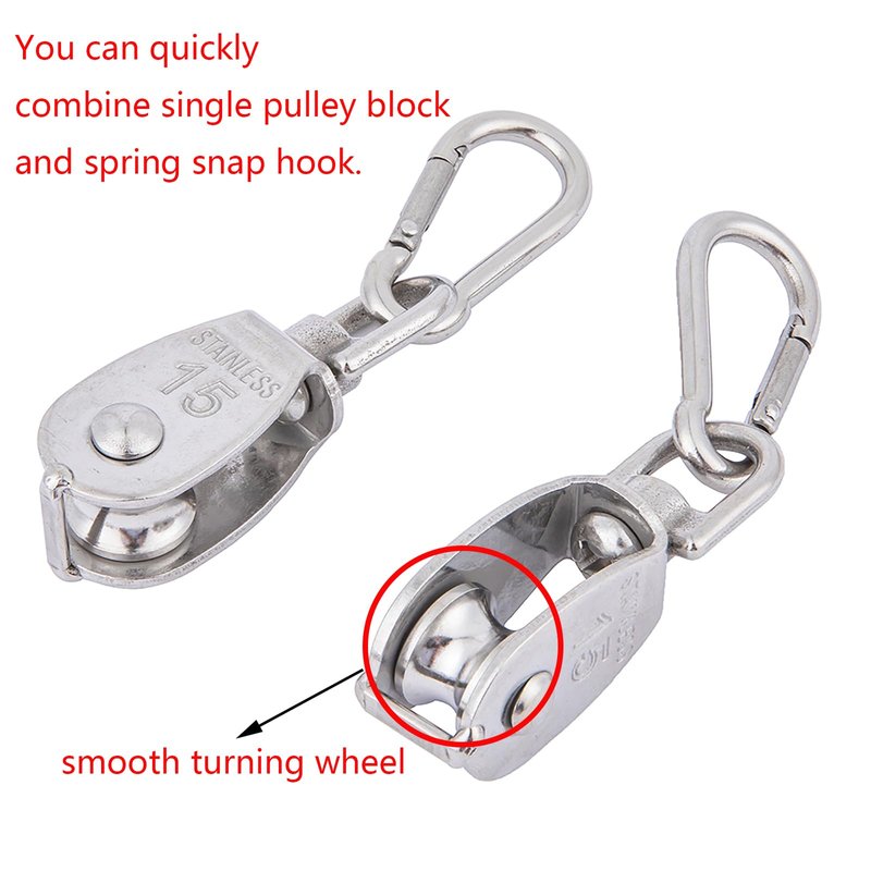 - ▶Packaging Includes◀: 10Pcs M15 stainless steel single pulley, 10Pcs stainless steel spring snap hook.