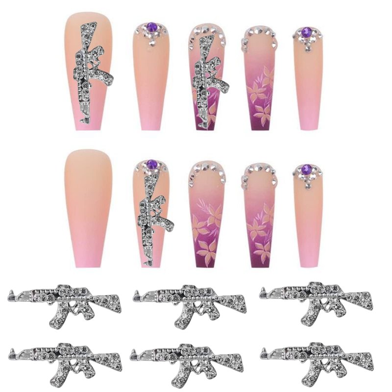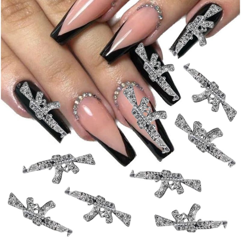 - ★【Recommendations for Use】 Because the gun charm is long and the process of pasting requires nail glue, we recommend pasting the gun to a long fake nail first and then attaching the fake nail with the gun charm on your nail.